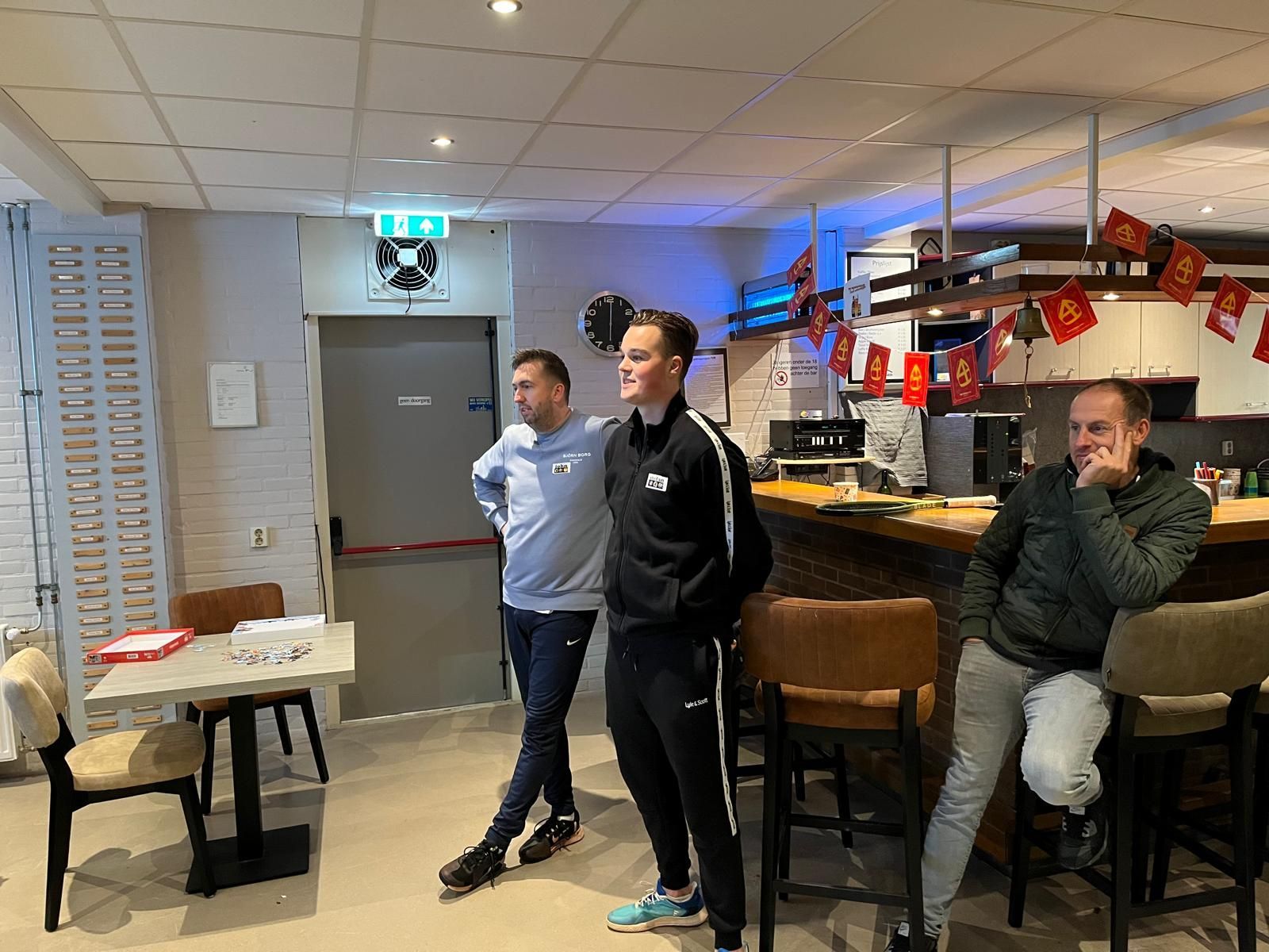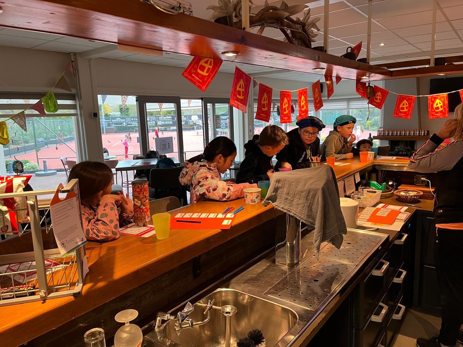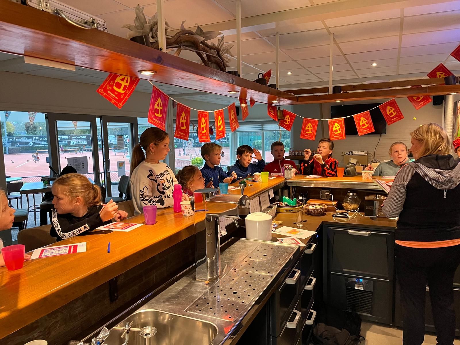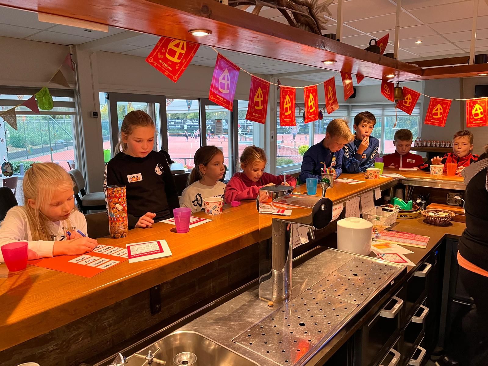 In de kantine was er van alles te doen: Swingo met sintmuziek, knutselen, pepernootsjoelen, kleuren, sintmemory en natuurlijk heel veel lekkers. Ook was er een spel: raad het aantal. Iedereen mocht een gokje doen hoeveel erin zat. Noa (Langeraar), Stijn (Nieuwkoop) en Raf (Zevenhoven) gingen met de pot naar huis!