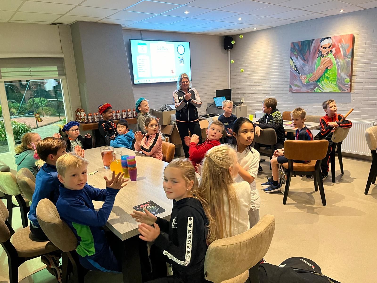 Kilo’s pepernoten, sintmuziek, vlaggetjes en spelletjes stonden klaar op beide tennisparken. Van 4 verenigingen deden er kinderen mee. Voor de kinderen van rood/oranje waren er allerlei tennisspelletjes op de baan o.l.v. meester Stefan en John. Wat een talenten hebben wij gezien. De jongste deelnemers waren 4 en 5 jaar, super knap! Ook werden er al wedstrijden gespeeld.