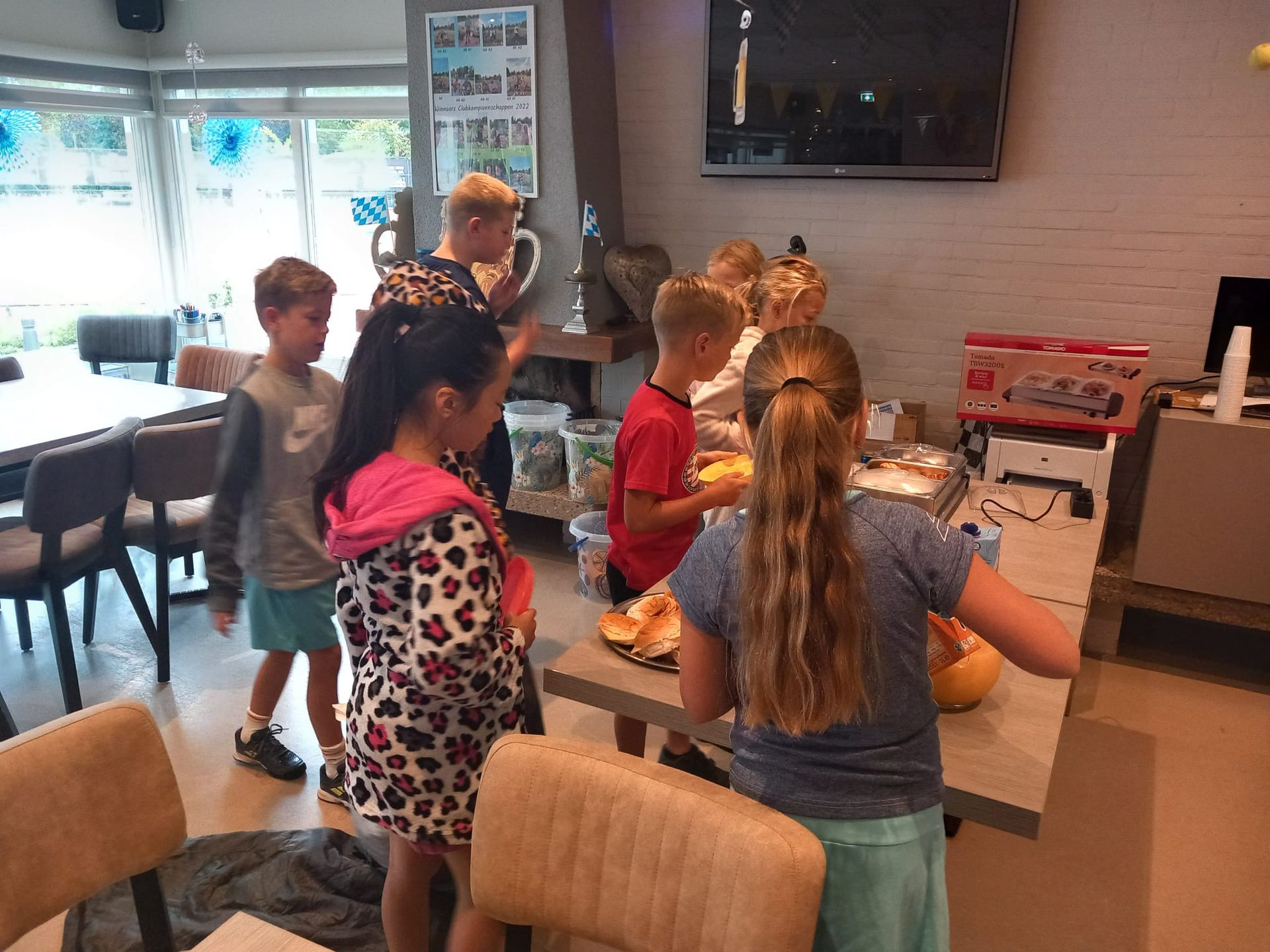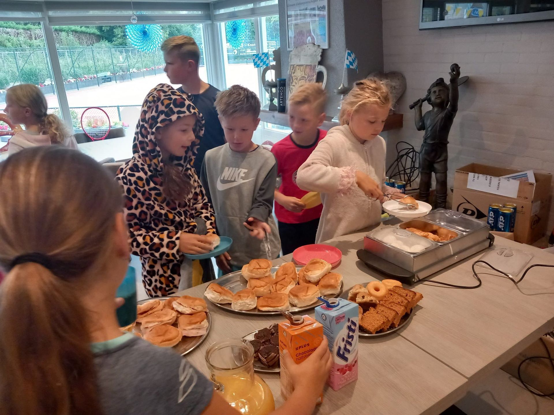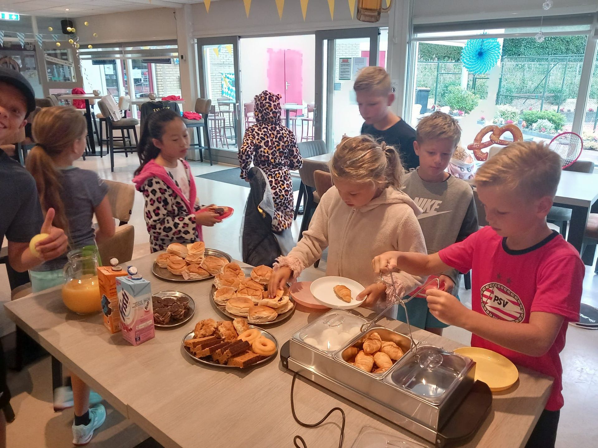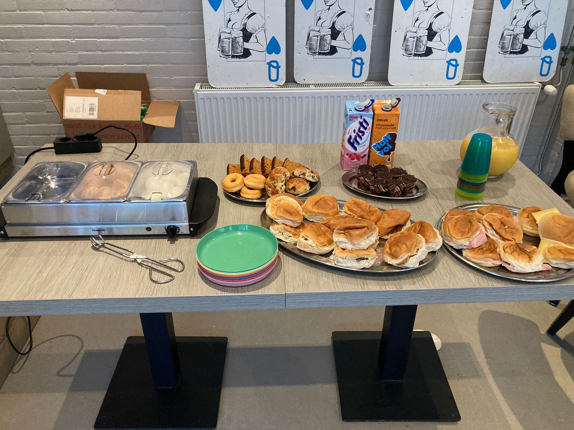 Eerst stond er een heerlijk ontbijt klaar; croissantjes, donuts, muffins, broodjes, een gekookt eitje, poffertjes, jus d’orange, fristi, vers fruit en nog meer. Er werd heerlijk gegeten.