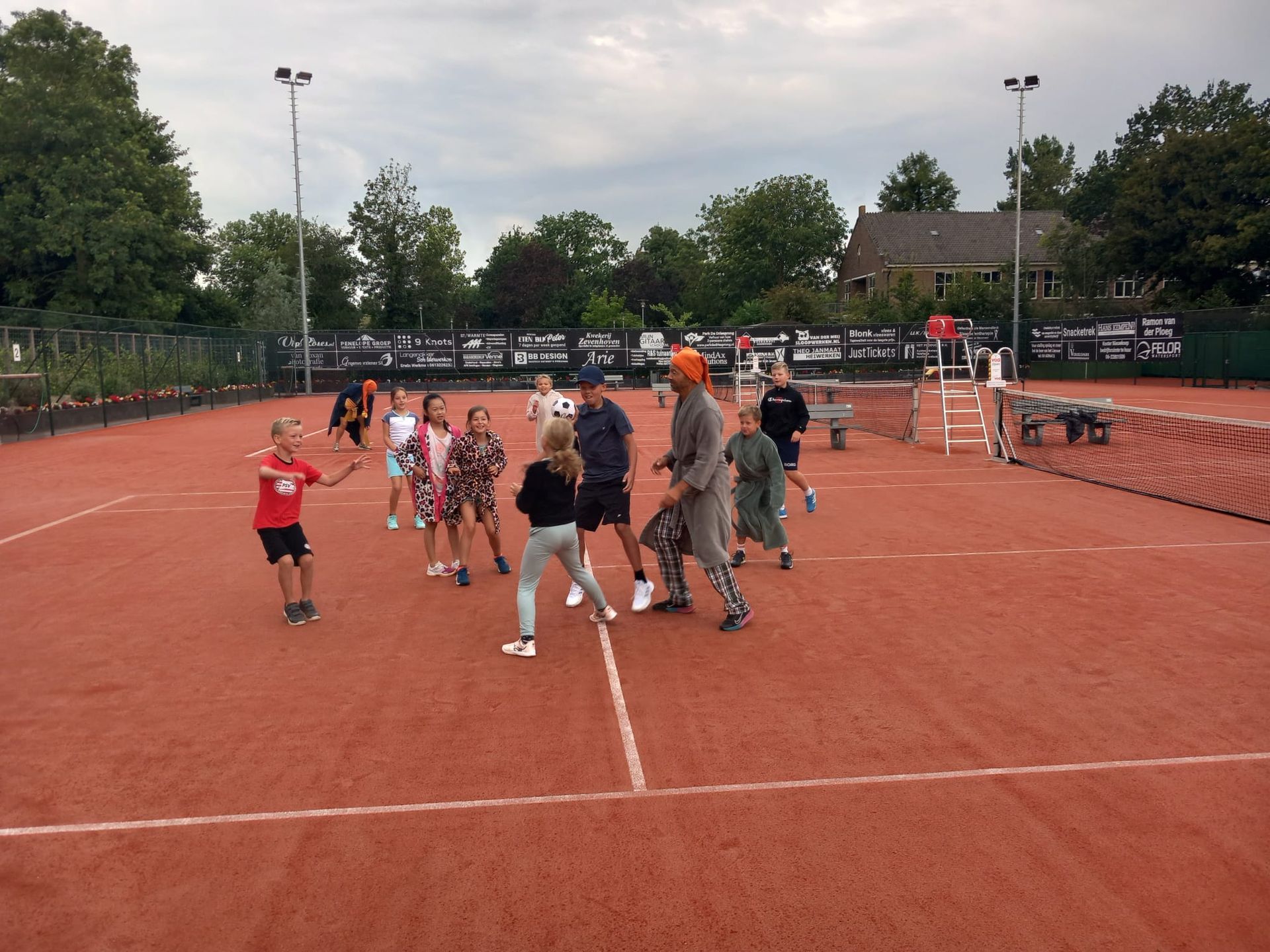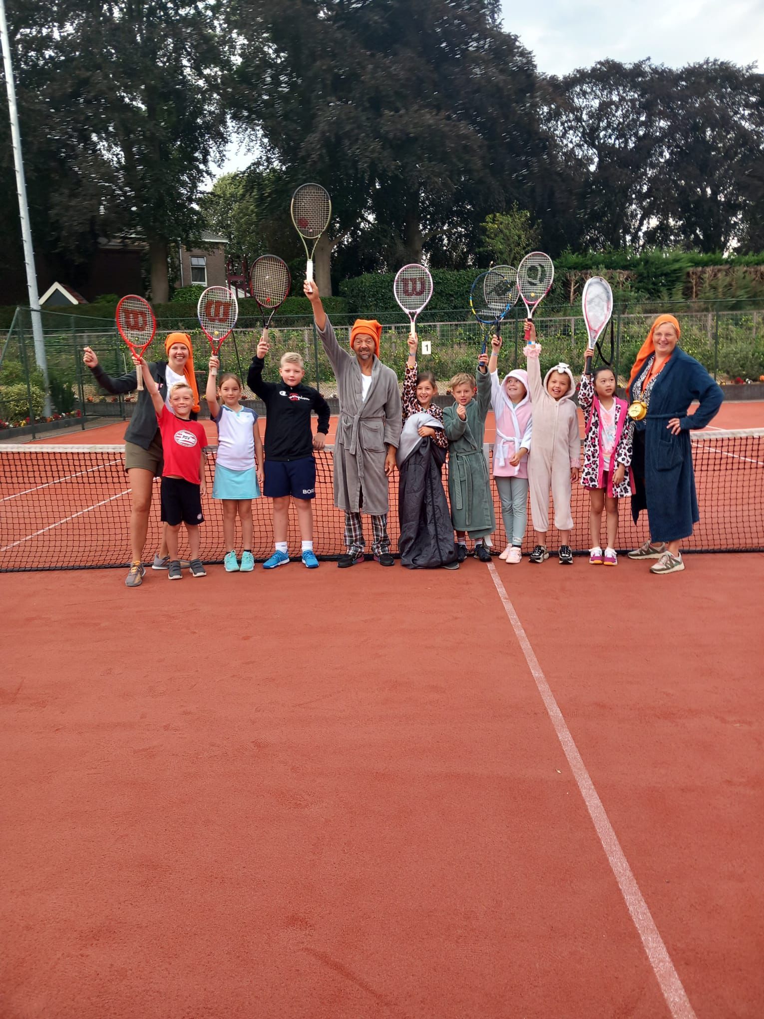 Eerst werden er leuke tennisspelletjes gedaan en daarna ook wedstrijden. De prijs voor de mooiste slaapoutfit is gegaan naar Amber! Zij won een leuk slaapmaskertje…..